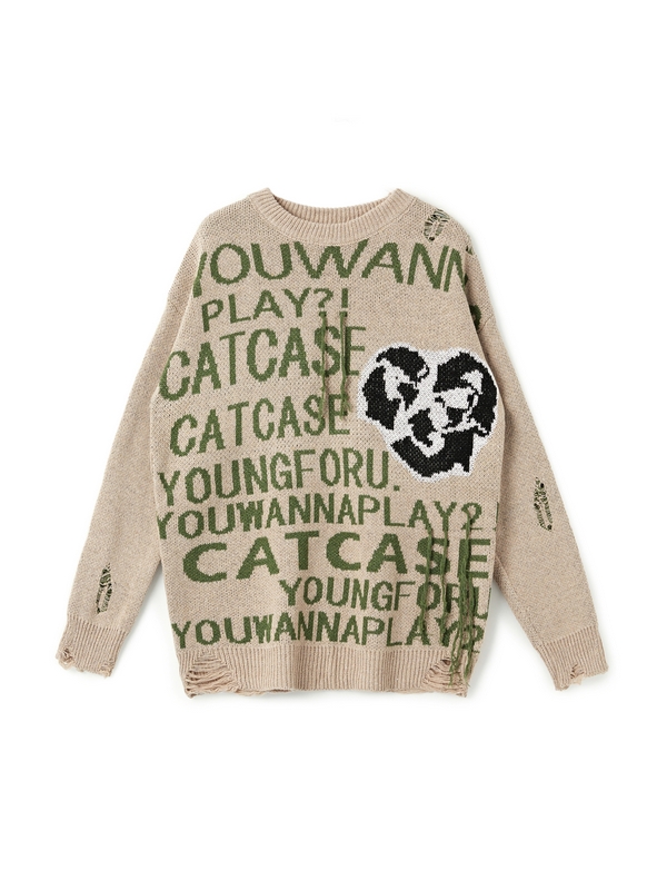 Men’s Letter Print Ripped Design Sweater