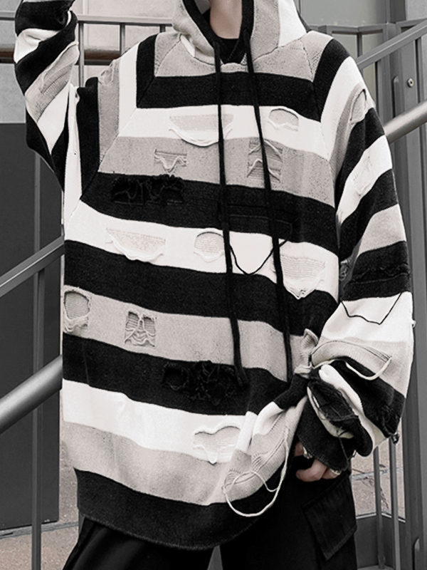 Men’s Contrast Striped Ripped Hooded Sweater