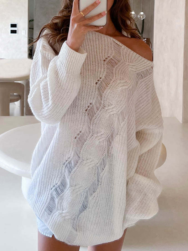 Casual Stripe Print Oversized Long Sleeve Sweaters