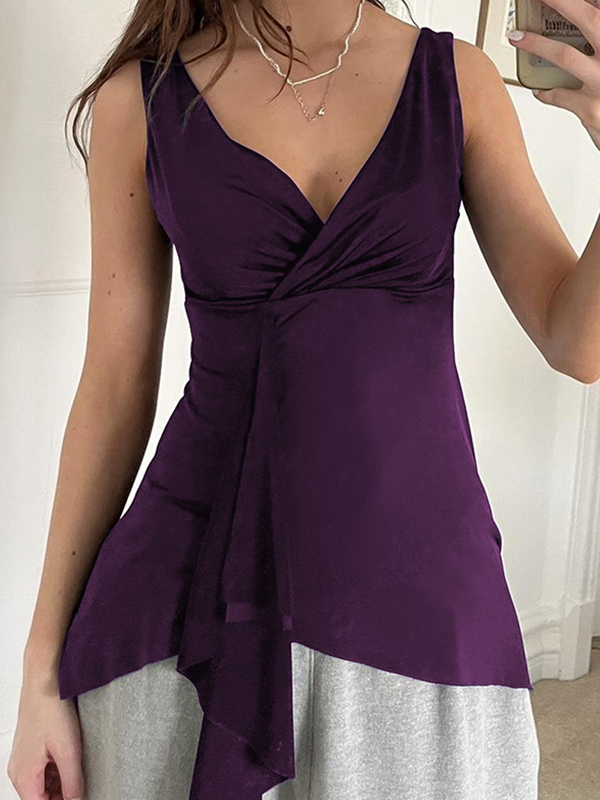 Plain V Neck Gathered Tank Top