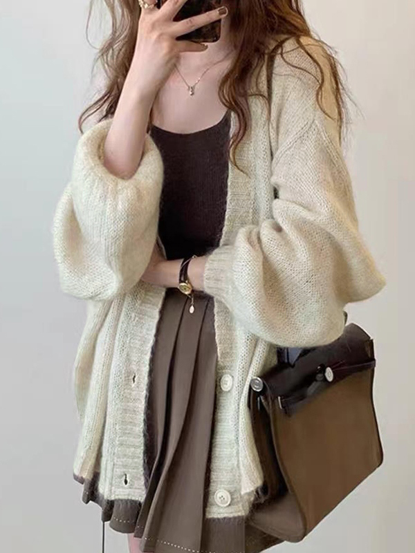 Mohair Solid Lantern Sleeve Baggy Cardigan