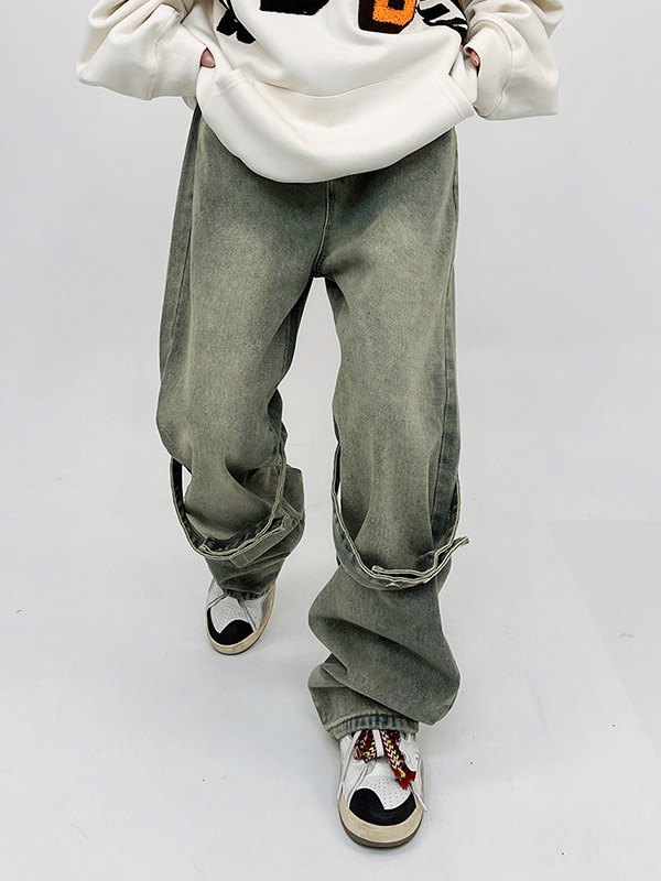 Retro Distressed Dirty Dyed Wide Legs Boyfriend Jeans