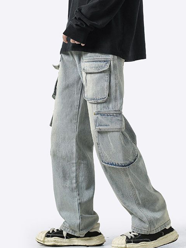 Men’s Washed Distressed Pocket Design Cargo Jeans