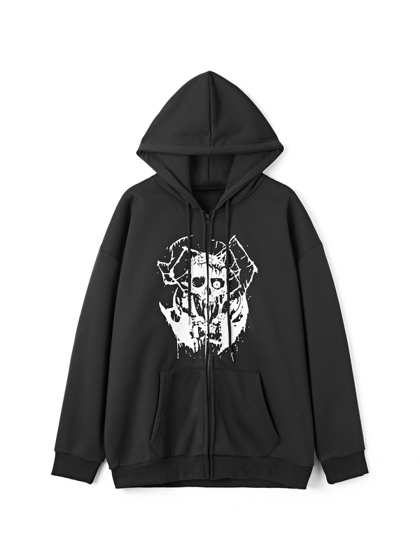 Men’s Gothic Skull Print Oversized Hoodie