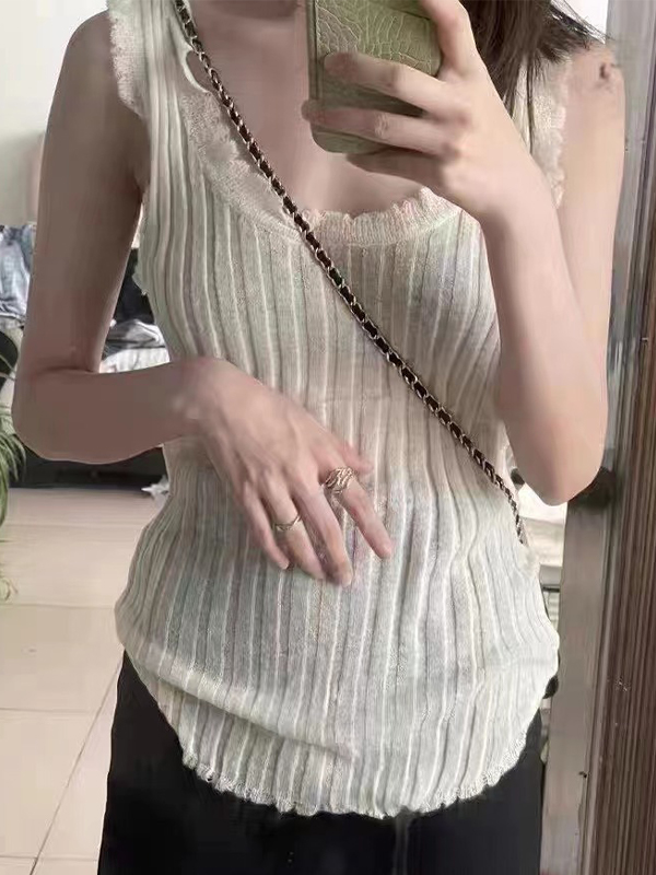 U Neck Cutout Trim Tank Top
