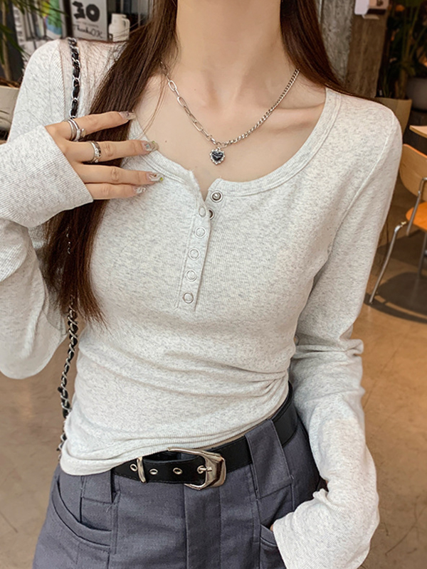 Solid Color Lace Hem Square Neck Crop Long Sleeve Knit