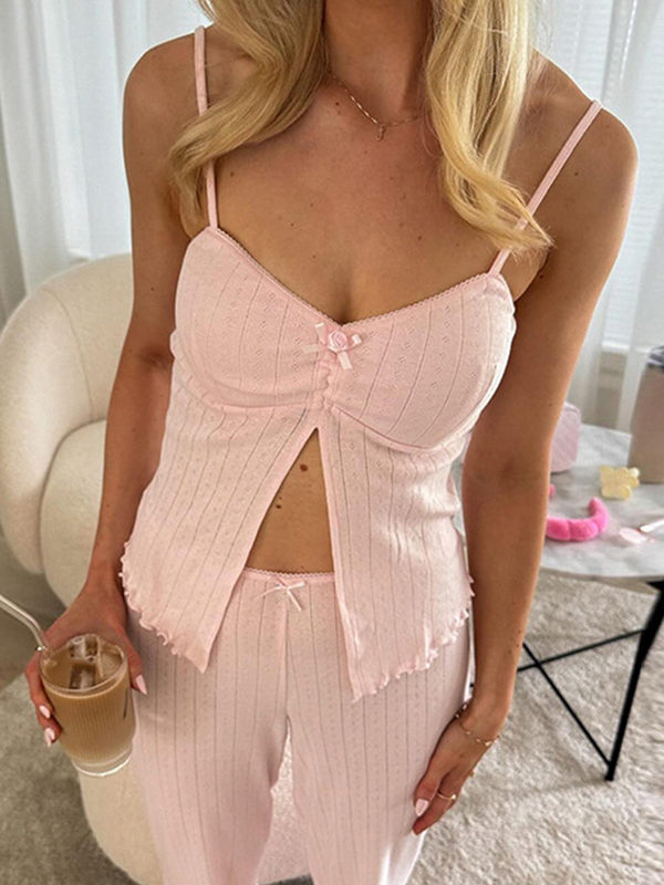 Solid Color Breasted Crop Turned Waist Knit Two Piece