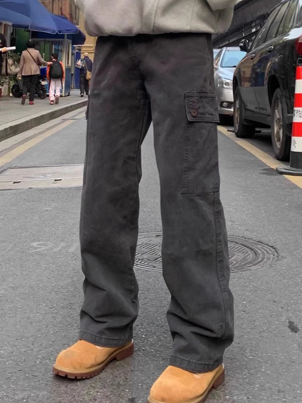 Men’s Bib Overall Loose Cargo Jumpsuit