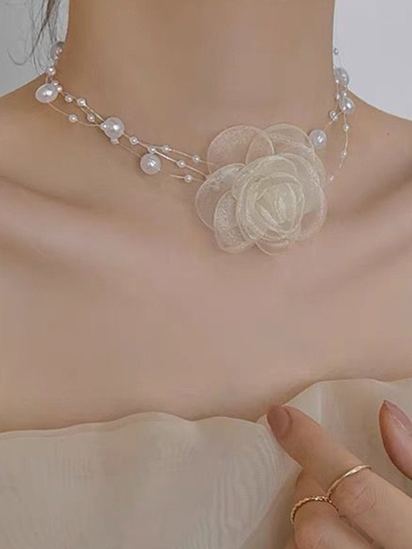 French Romantic Flower Pearl Necklace