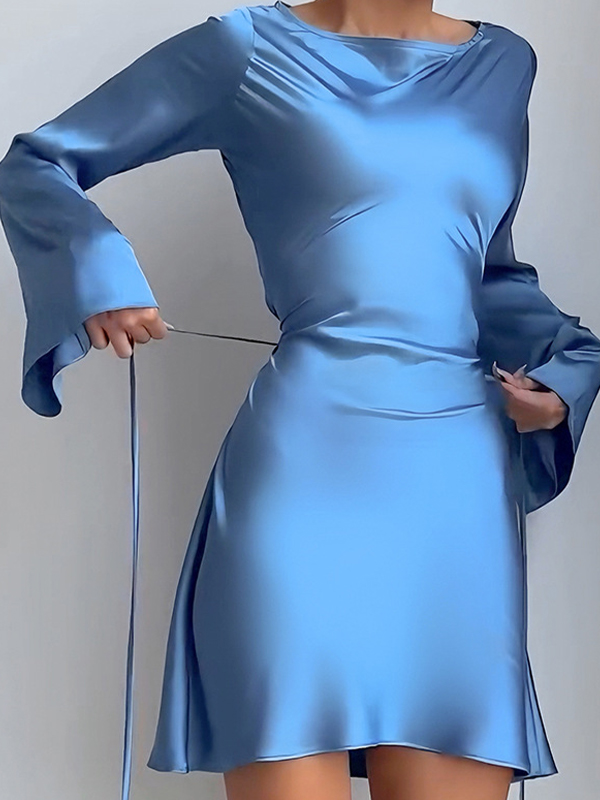 Temperament Waist-Cinching Straps In Satin Mini Dresses