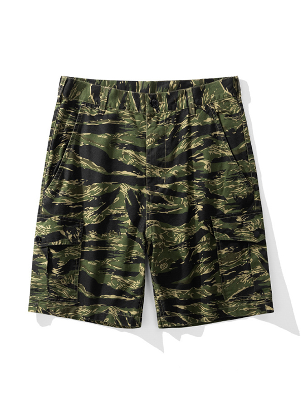 Men’S Solid Multi Pocket Loose Cargo Shorts