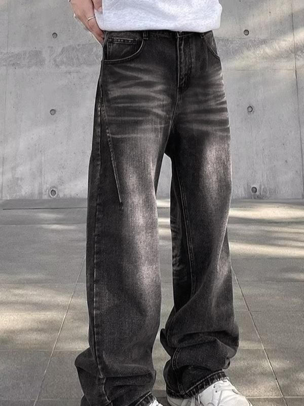 Men’s Vintage Wash Flared Loose Jeans