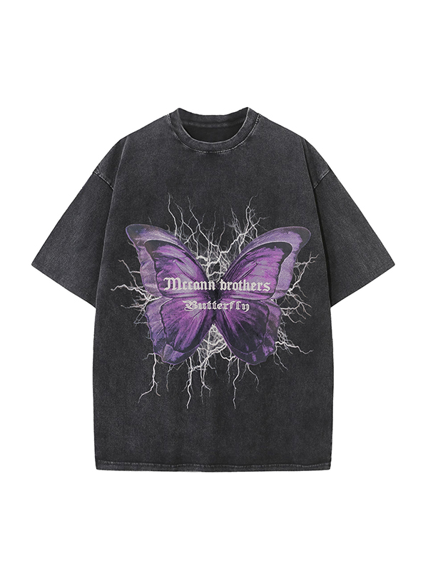 Men’s Distressed Butterfly Print Short Sleeve Tee