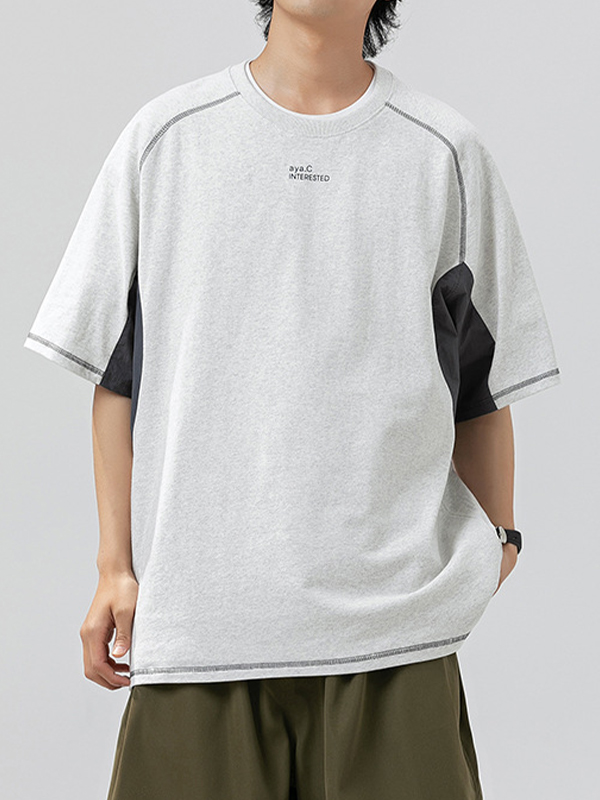 Men’s Letter Print Contrast Color Short Sleeve Tee