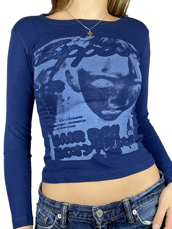 Pixel Face Print Long Sleeve Tee