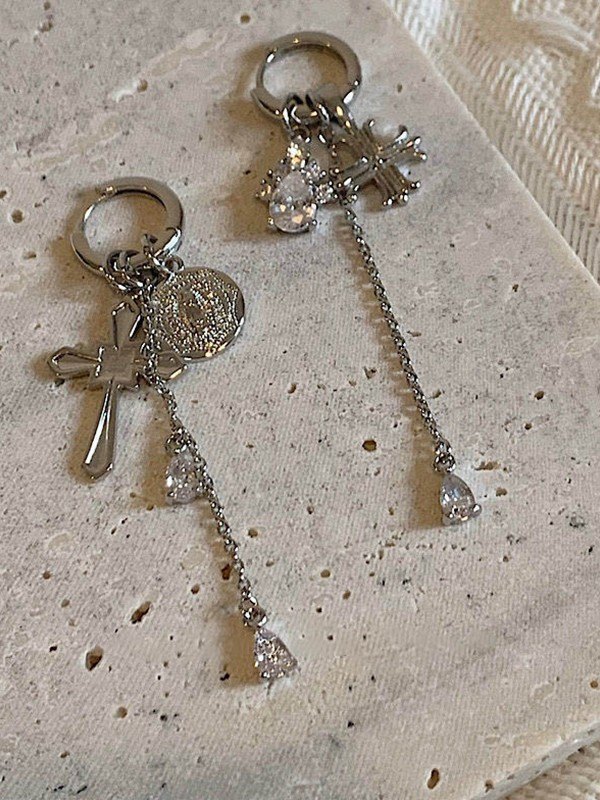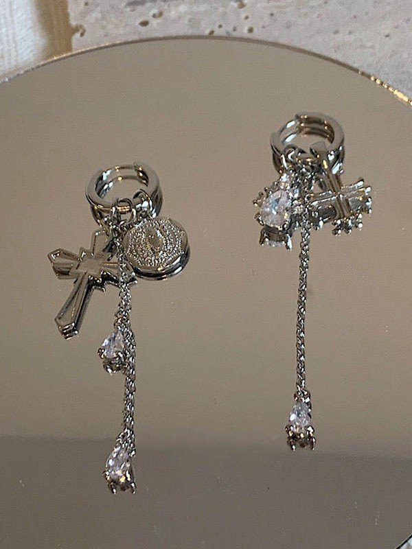 Be the first to review “Cross Pendant Zircon Tassel Hoop Earrings”