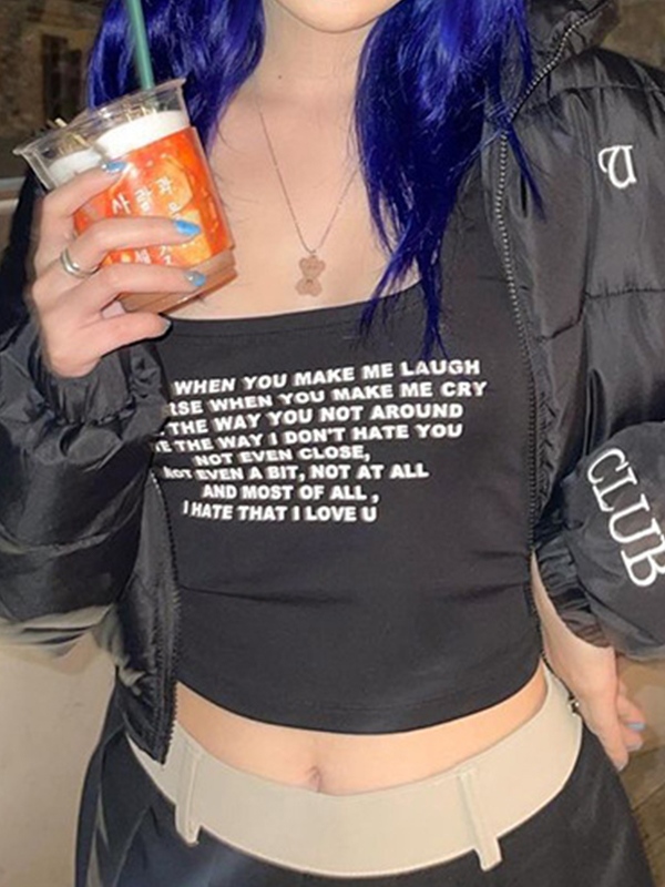 Letter Print Navel Bare Slim Fit Short Tank Top