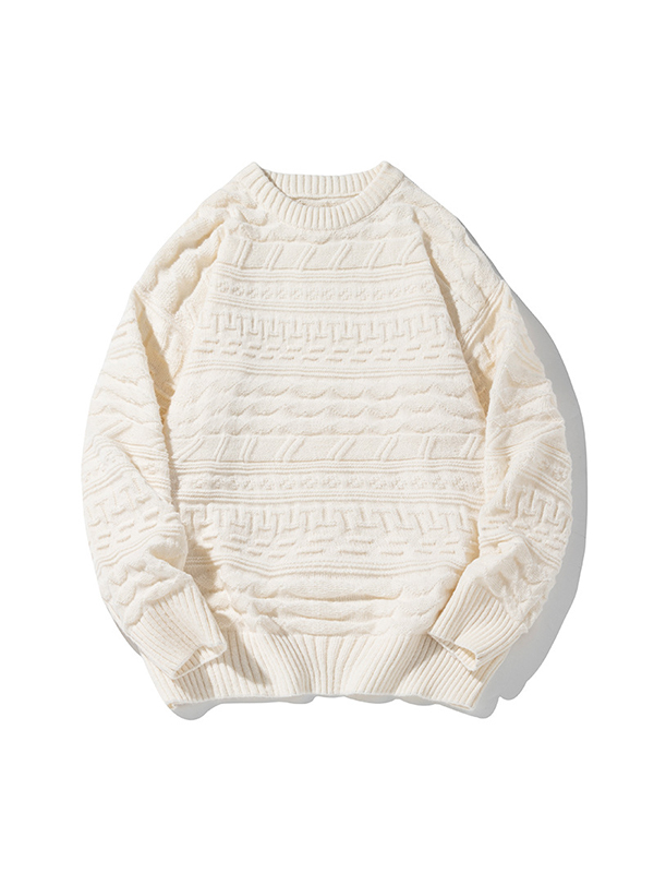 Retro Cable Textured Crew Neck Sweater
