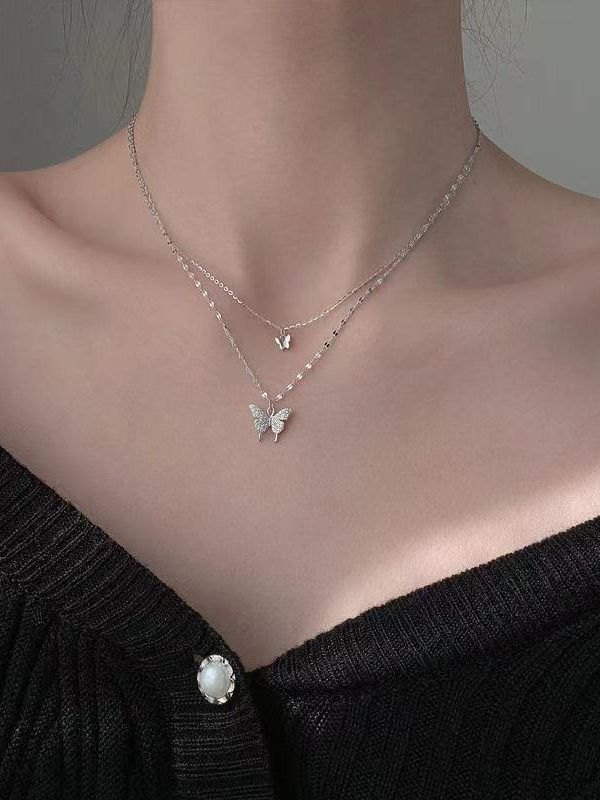 Be the first to review “Rhinestone Butterfly Pendant Double Layered Necklace”