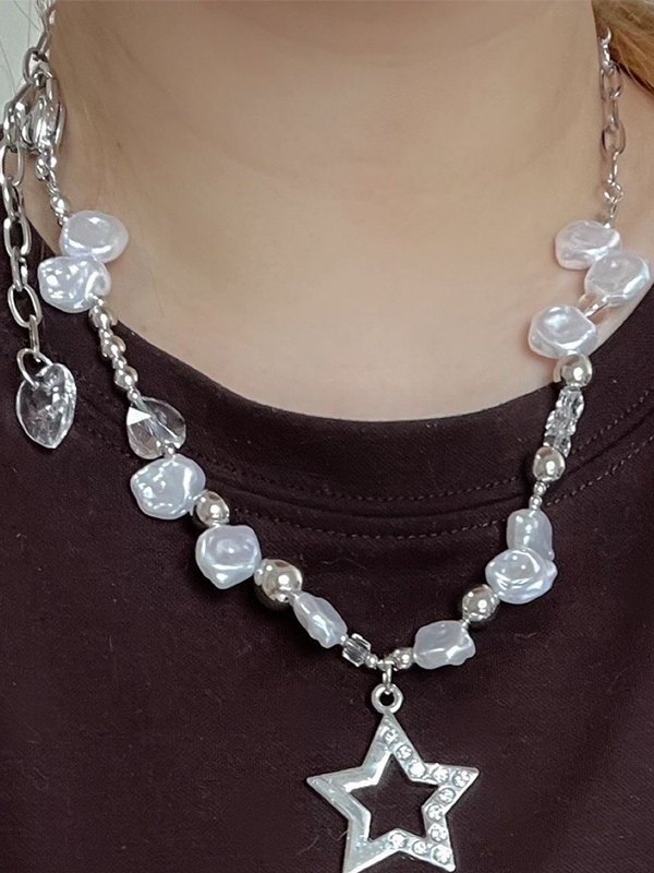 Be the first to review “Rhinestone Star Beads Chain Necklace”