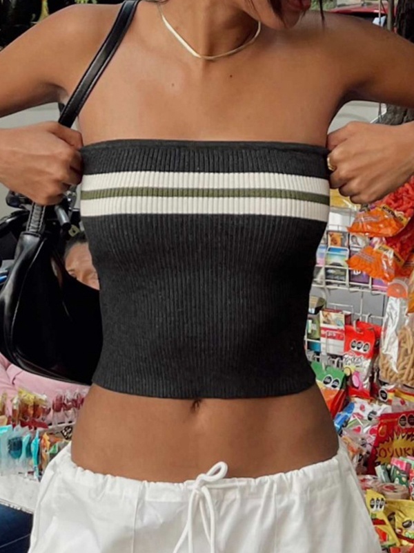 Lace Mesh Splice Lettuce Hem Bandeau Top