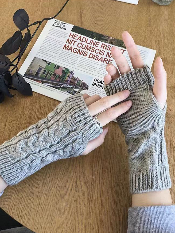 Thumbhole Cable Knit Hand Warmer Gloves