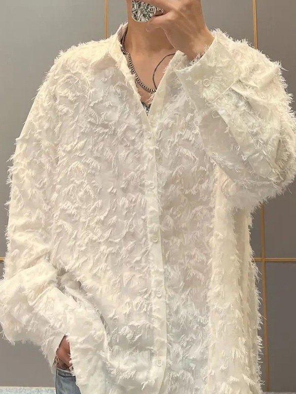 Men’s Fuzzy Long Sleeve Button Down Shirt